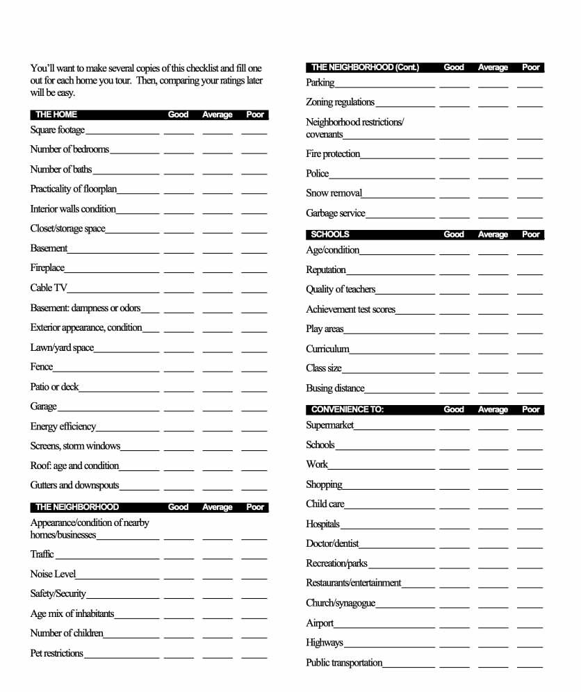 A handy checklist to print and use while looking at homes